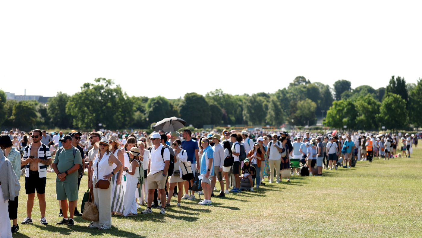 Spectators wait in the queue on day one of The Championships Wimbledon 2025 at All England Lawn Tennis and Croquet Club, June 30.