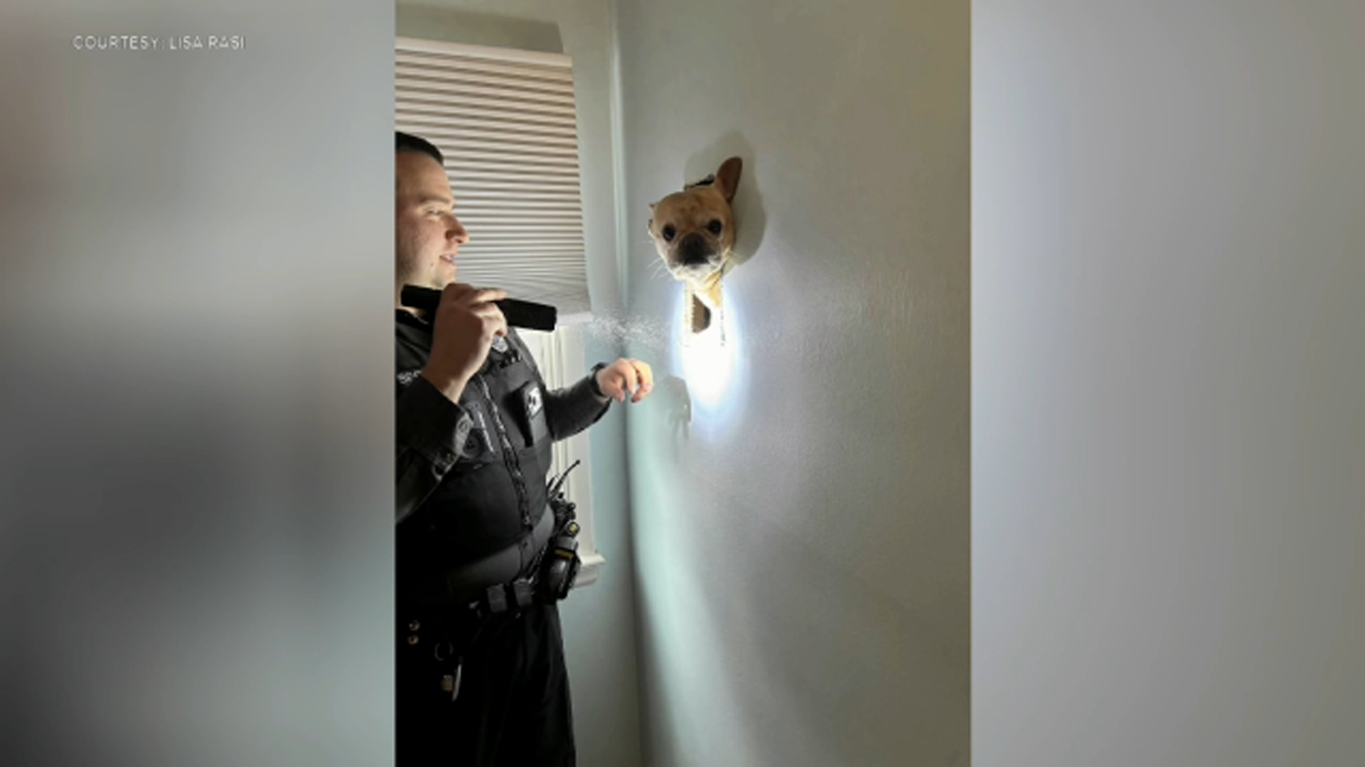 UPPER DUBLIN, Pa. (WPVI) — An Upper Dublin dog got stuck inside the wall of a home after falling through the floor of an attic.