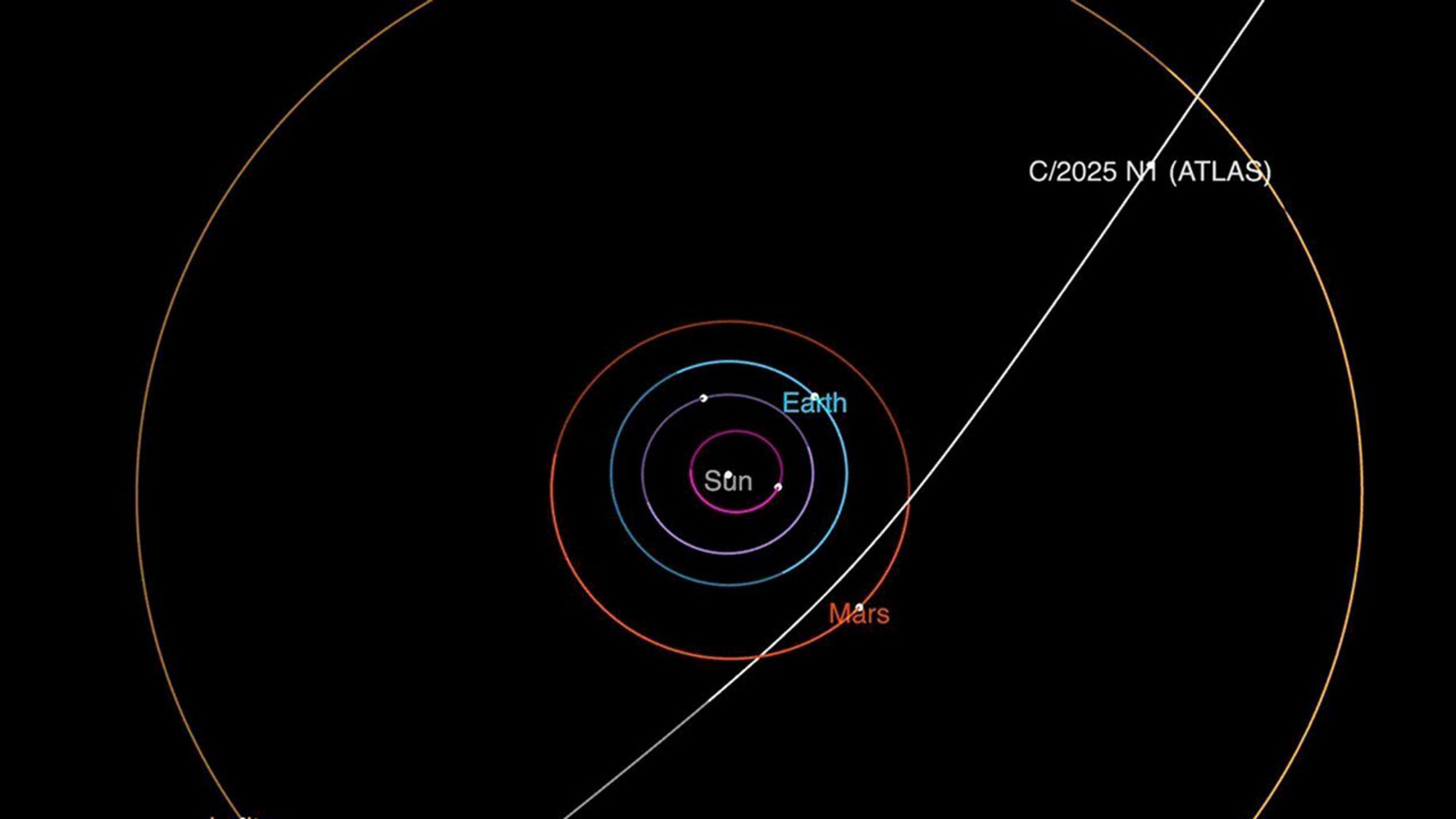 This diagram provided by NASA/JPL-Caltech shows the trajectory of interstellar comet 3I/ATLAS as it passes through the solar system.
