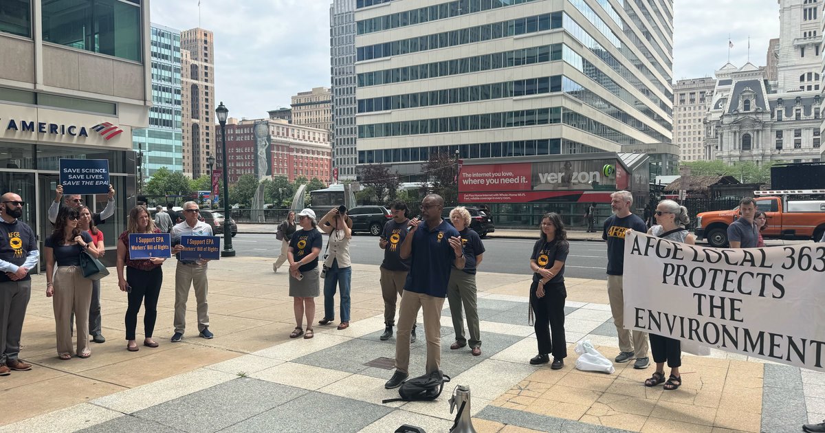 The demonstrators are members of American Federation of Government Employees Local 3631, which represents EPA civil servants in the Philly region. They said they gathered at 1600 John F. Kennedy Blvd. to show their solidarity with the suspended workers.