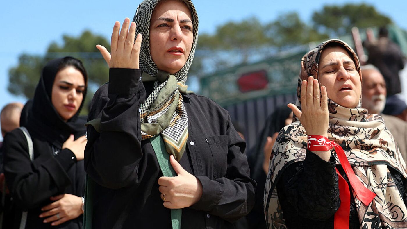 Iranian women mourn during a funeral for victims of the Middle East war at the Behesht Zahra cemetery in southern Tehran on March 26, 2026.