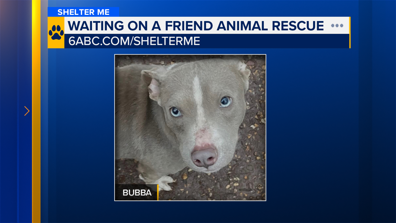 This week on Shelter Me, we’re meeting Bubba from Waiting on a Friend Animal Rescue.