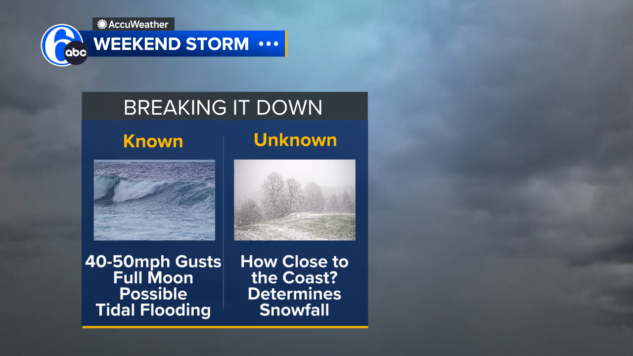 Model consensus keeps the center of the storm almost 275 miles southeast of Atlantic City, with the biggest impacts likely to be felt at the shore. Some of those impacts include 40-50 mph wind gusts and tidal flooding, especially with a full moon on Sunday, leading to already high astronomical tides.