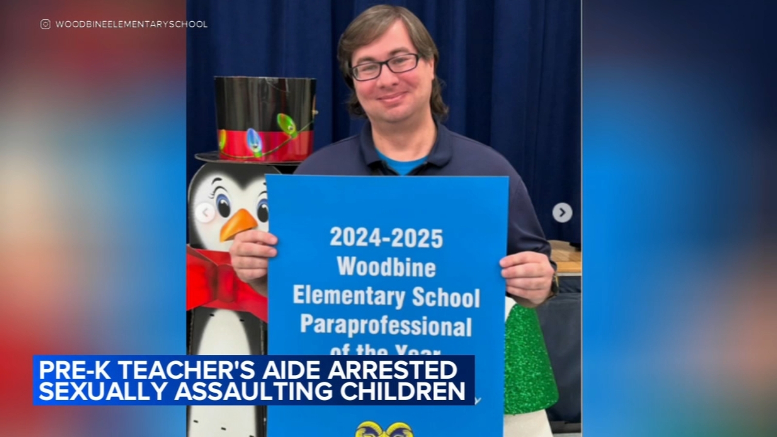 Authorities say Stebbins worked as a pre-kindergarten teacher’s aide at Woodbine Elementary School. In an Instagram post last year, the school congratulated him on being named “paraprofessional of the year.”