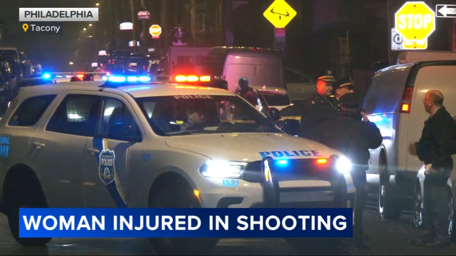 Police say a 34-year-old woman was found shot with a graze wound to the leg and taken to Jefferson Torresdale Hospital in stable condition.